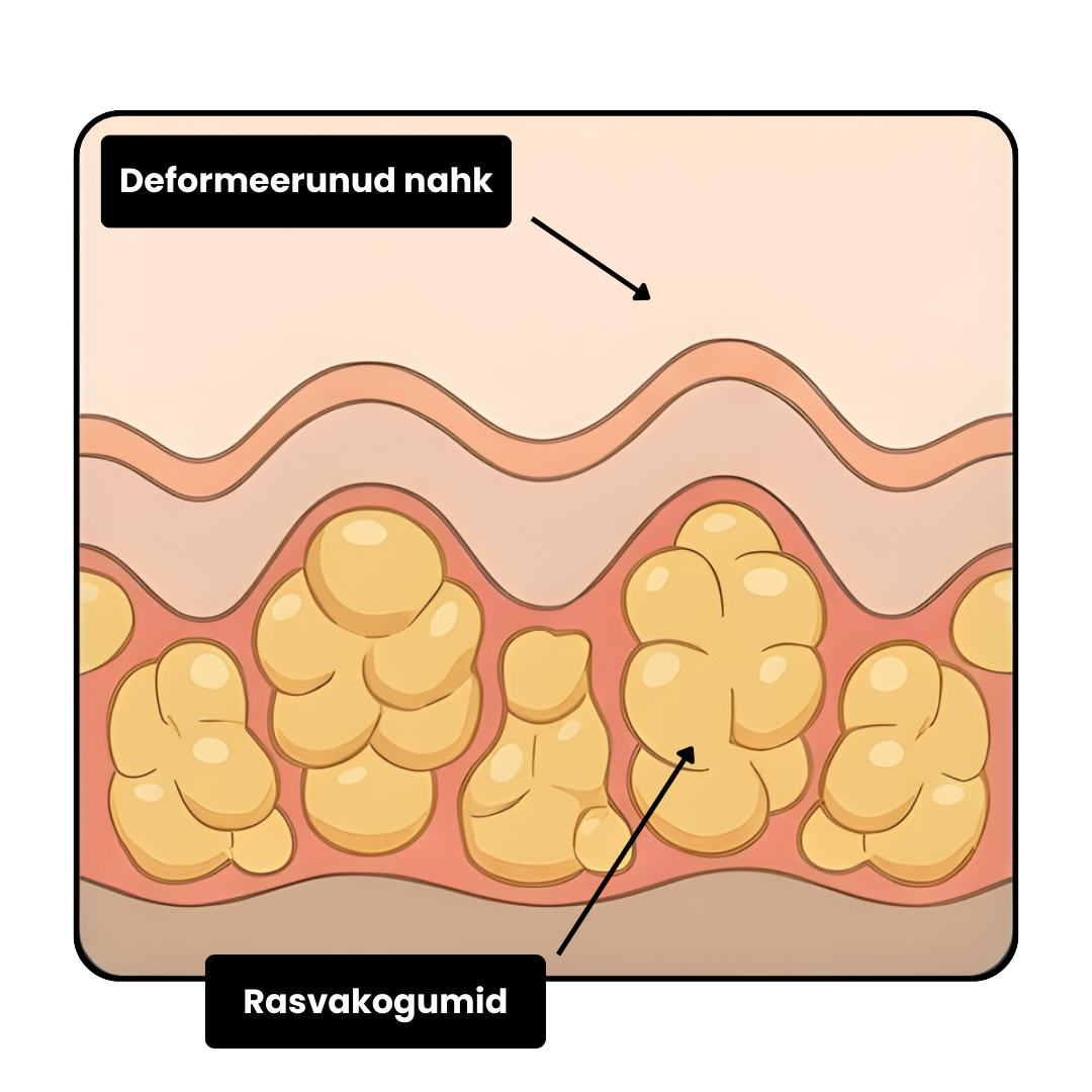 Tselluliit tekib siis, kui nahaalused rasvakogumid suruvad nahka altpoolt ning sidekude tõmbab seda allapoole. Selle tulemusena naha pind deformeerub ja muutub ebaühtlaseks.